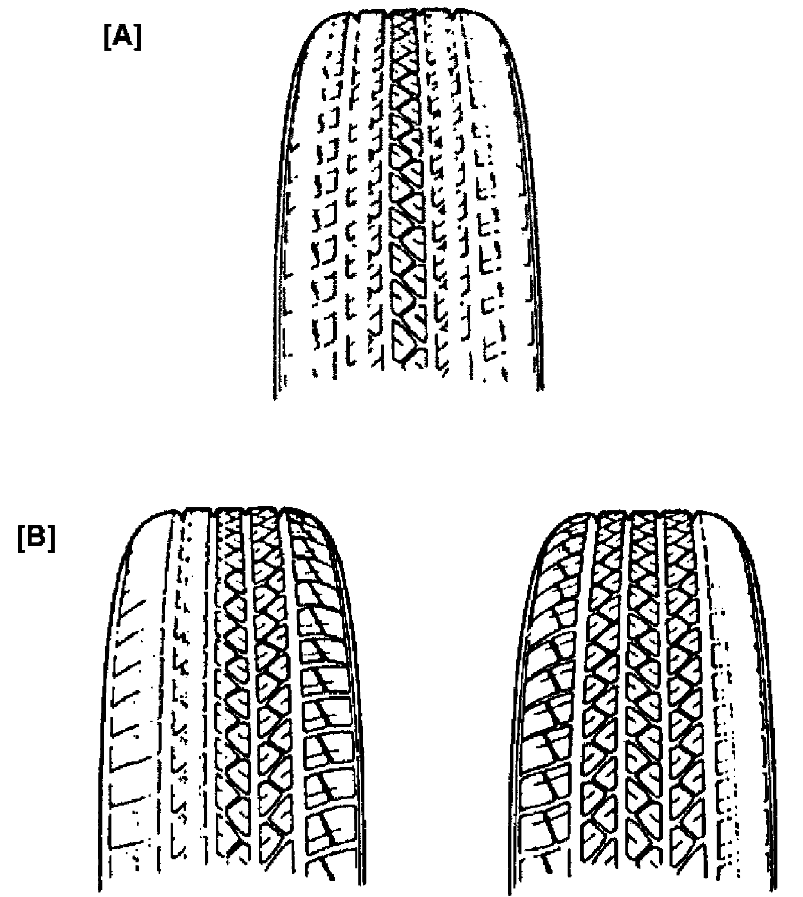 If a tire has indicators (1) appearing across 3 or more tread grooves at 6 locations, replacement of the tire is recommended.