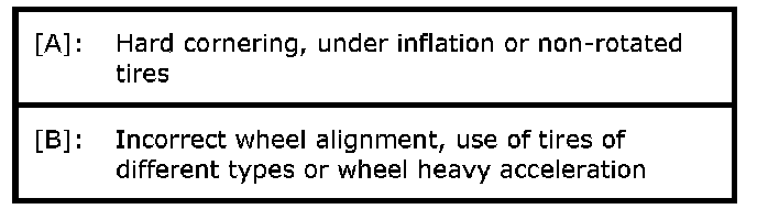 ^ Abnormal wear such as cupping and flat spotting is noted.