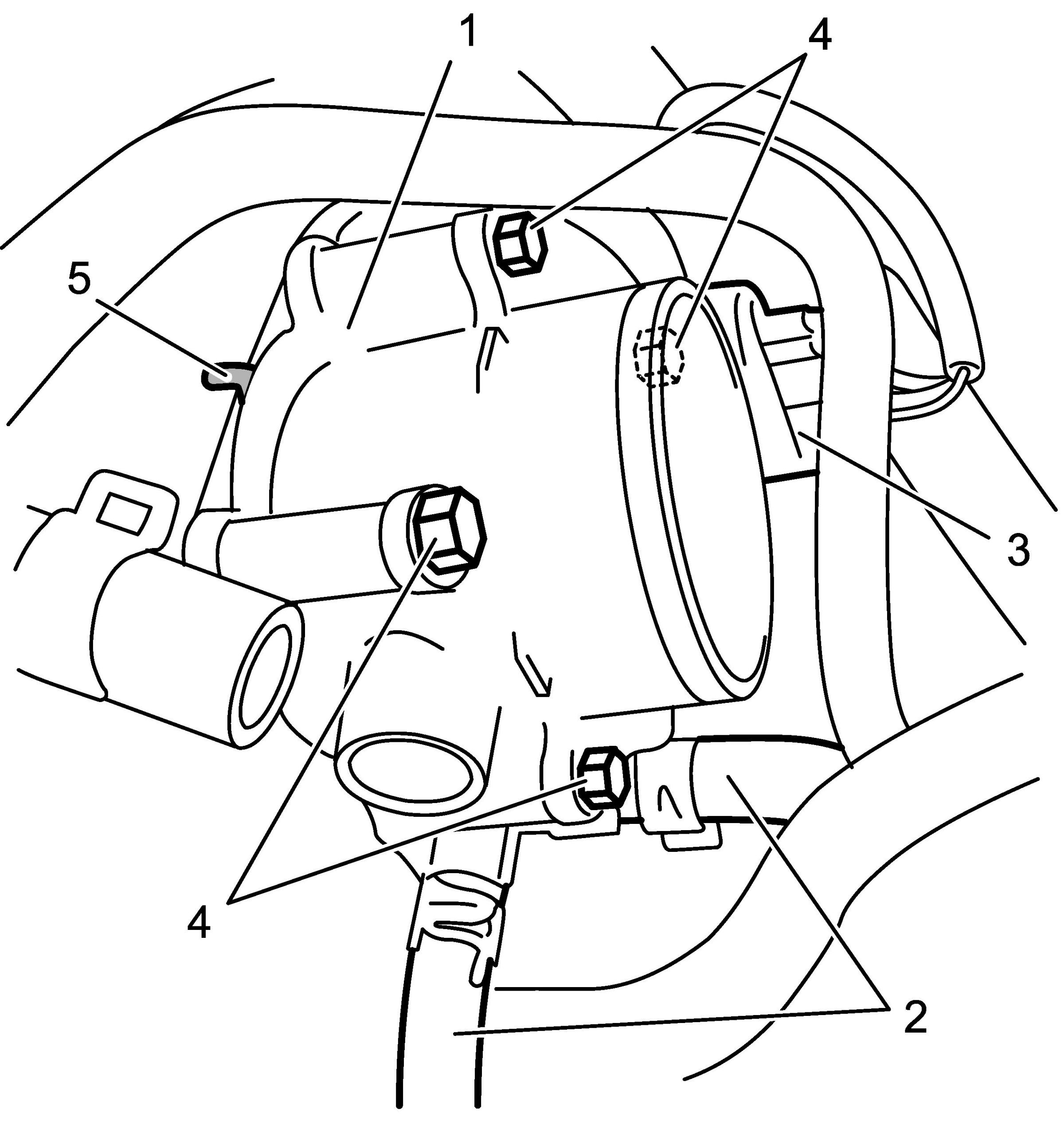 4) Disconnect engine coolant hoses (2) and connector (3) from throttle body assembly (1).