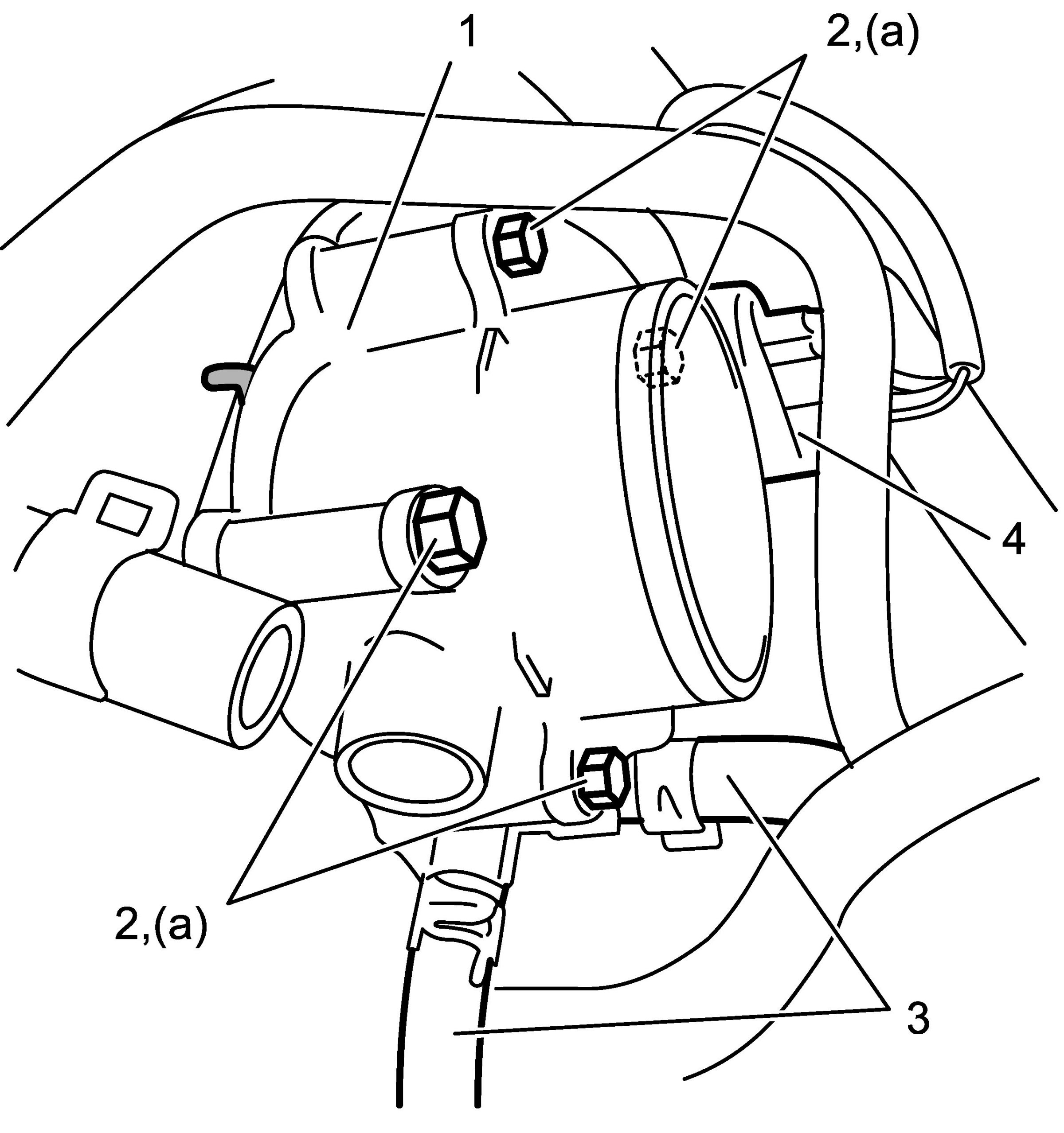 3) Connect connector (4) and coolant hoses (3) to throttle body assembly (1).