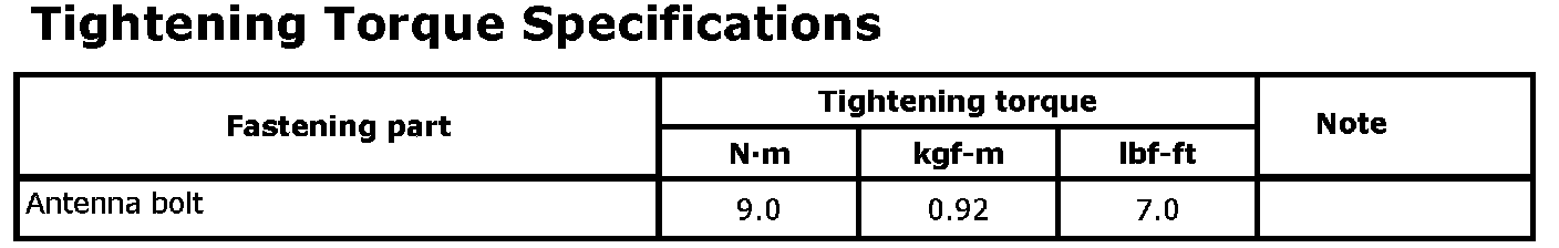 For the tightening torque of fastener not specified in this section, refer to Fasteners Information.
