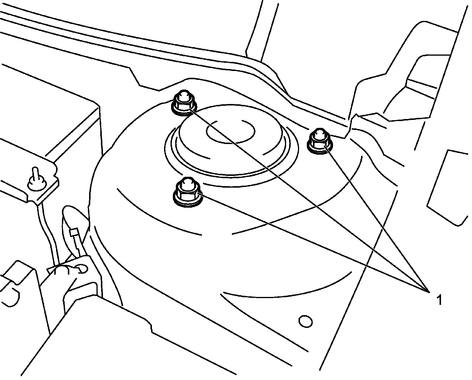 7) Remove strut support nuts (1), then remove front strut assembly.