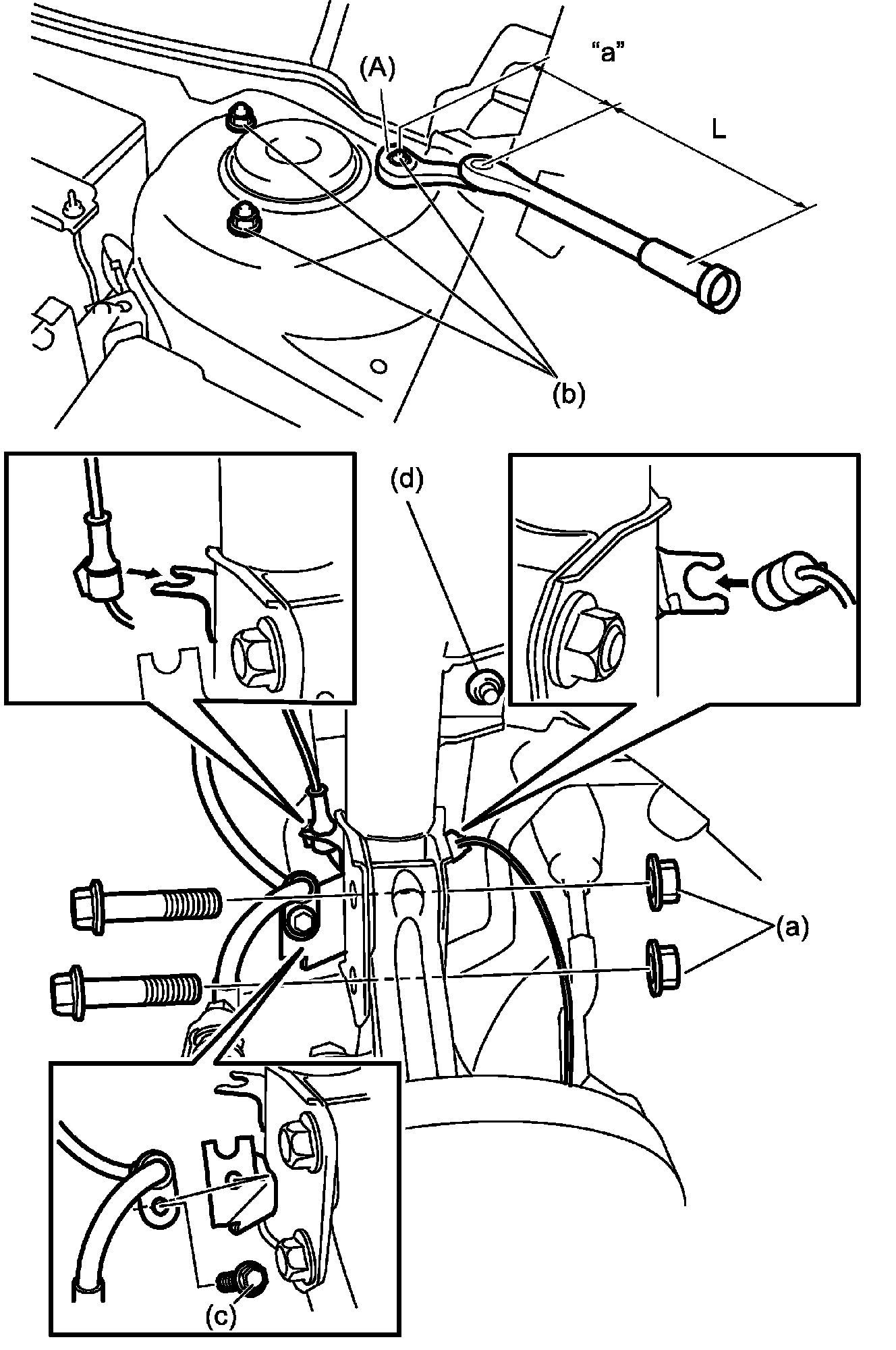 Strut bracket nut (a): 120 Nm (12.2 kg-m, 88.5 lbf-ft)