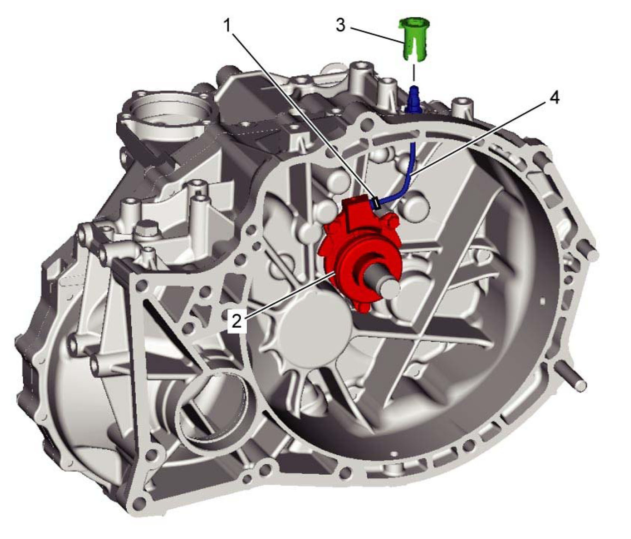 1) Install clutch operating cylinder assembly (2) to transaxle. Tighten new mounting bolts to specified torque.