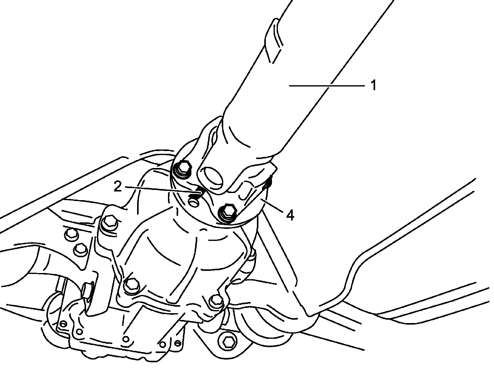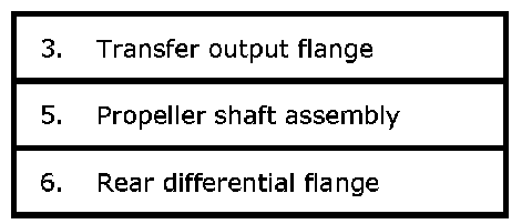 6) Separate propeller shaft assembly from transfer output flange (3) and rear differential flange (4).