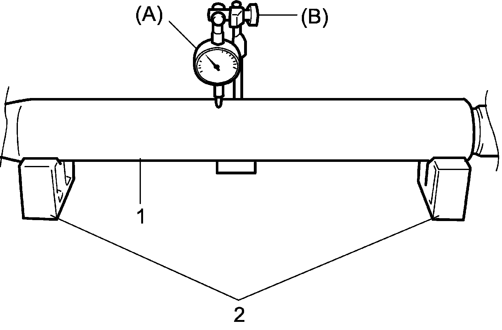 Use dial gauge to check runout of propeller shaft (1). If any abnormalities are found, replace propeller shaft assembly with a new one.