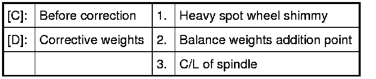 Dynamic balance, as shown in the figure, is equal distribution of weight on each side of wheel center line so that when the tire spins there is no tendency for the assembly to move from side to side. Wheels that are dynamically unbalanced may cause shimmy.