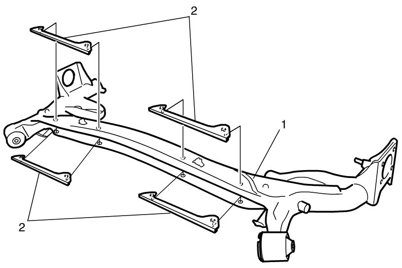 8) While supporting rear axle (1) at both ends remove rear axle bolts and then remove rear axle from chassis by lowering floor jack gradually.