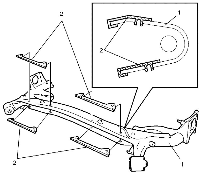1) Install rubber edge covers (2) (if equipped) to rear axle (1) as shown in figure, if removed.