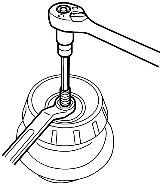 When tightening strut support lower nut, hold stud with hexagon wrench.
