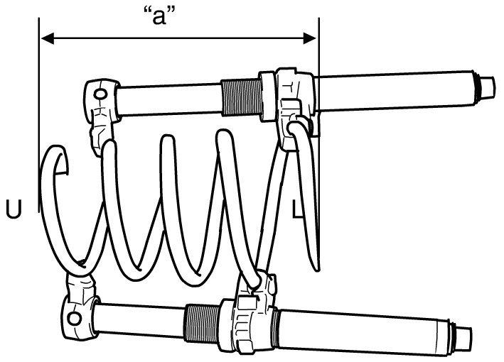 1) Compress coil spring using special tool (spring compressor) until total length becomes about 280 mm (11.0 in.) as shown.