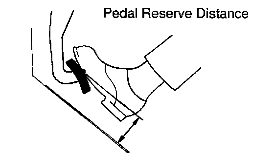 With the engine running, depress the pedal and measure the pedal reserve distance, as shown.