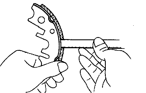 Replace the disc if the inside diameter is at the maximum value or more. Replace the disc or grind it with a lathe if the disc is scored or worn unevenly.