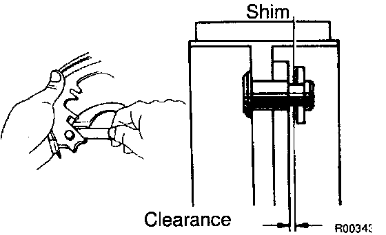 If the clearance is not within the specification, replace the shim with one of the correct size.