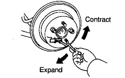 c. Turn the adjuster and expand the shoes until the disc locks.