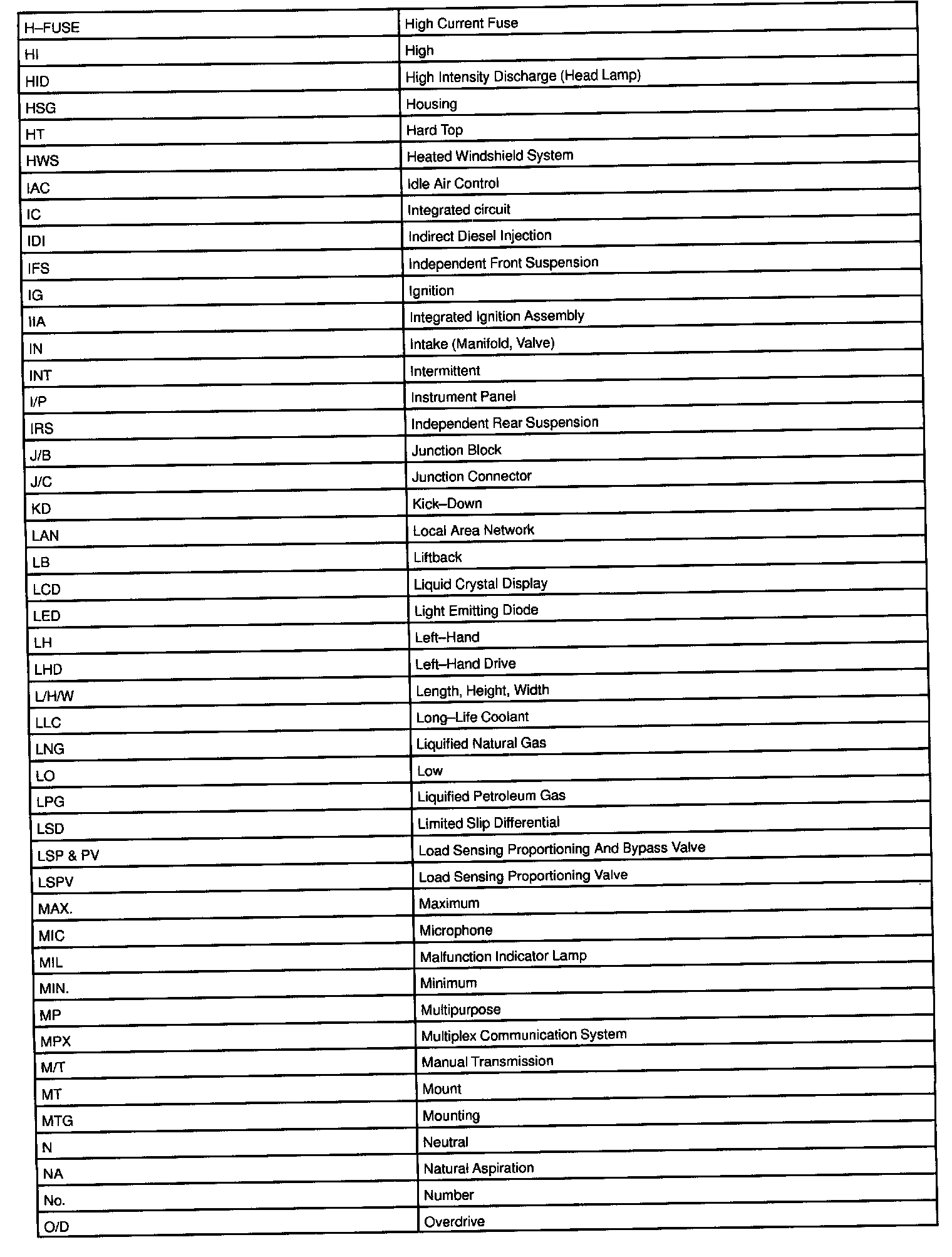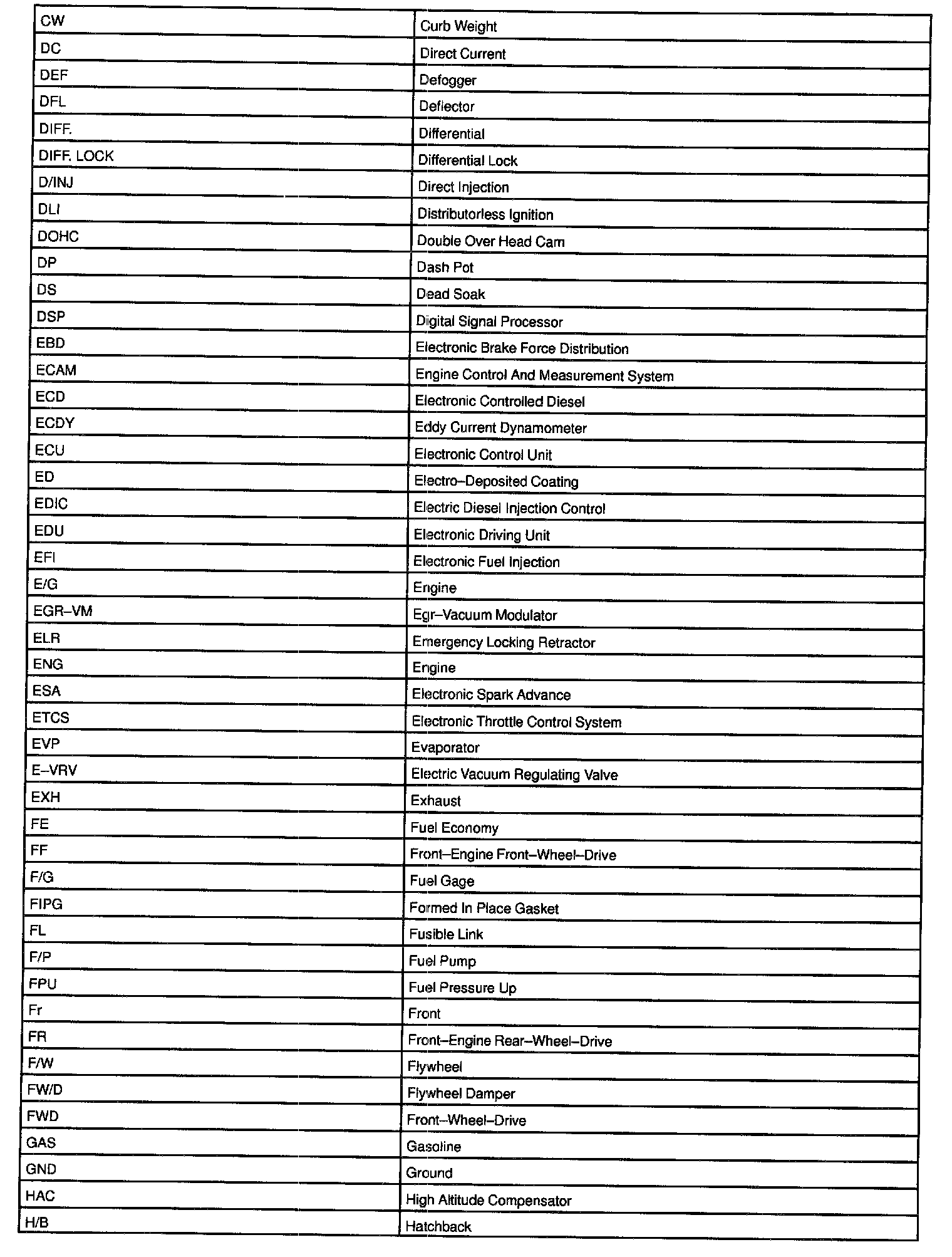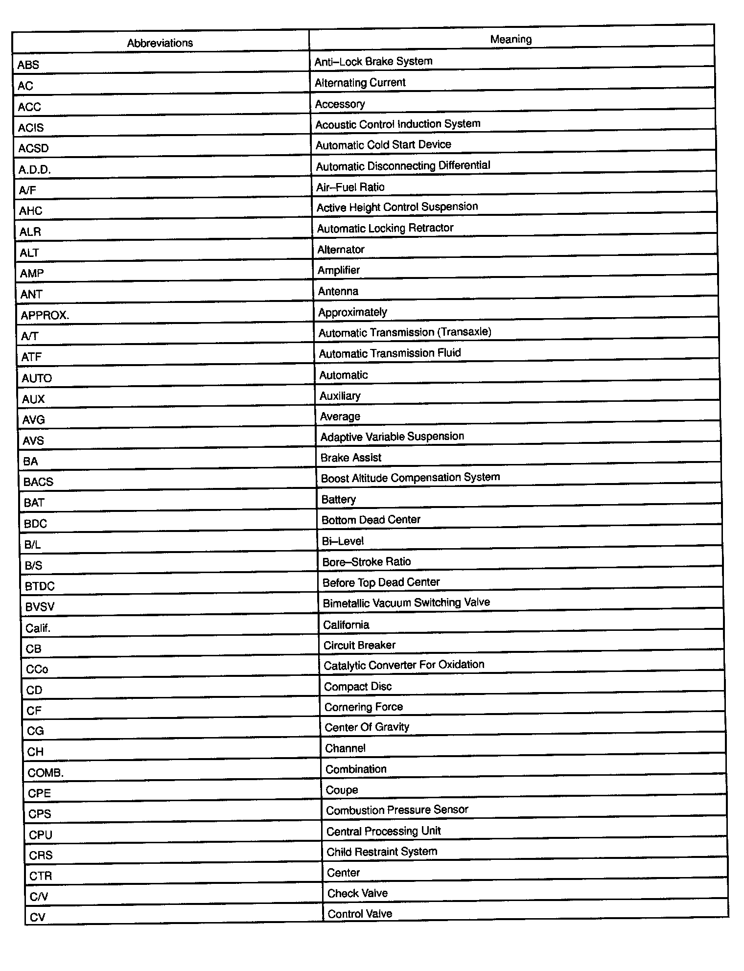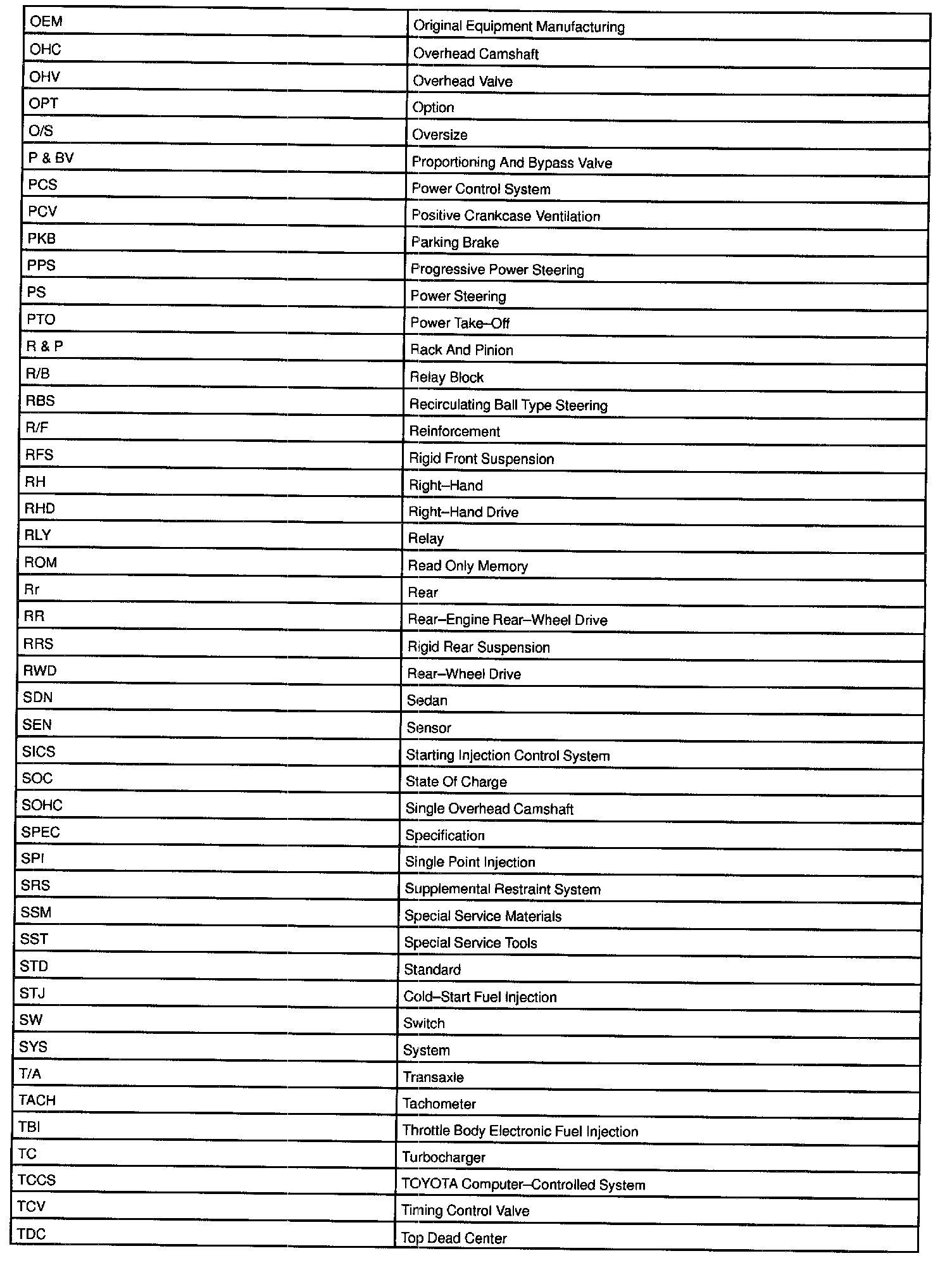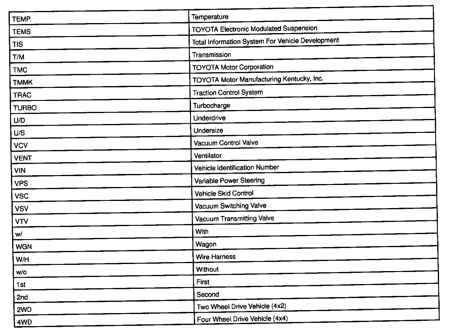 Abbreviations Used By TOYOTA