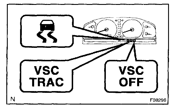 HINT: Do not forget to change the Vehicle Skid Control (VSC) & Traction Control (TRAC) system to operational condition. Check that the VSC warning indicator light goes off when restarting the engine.