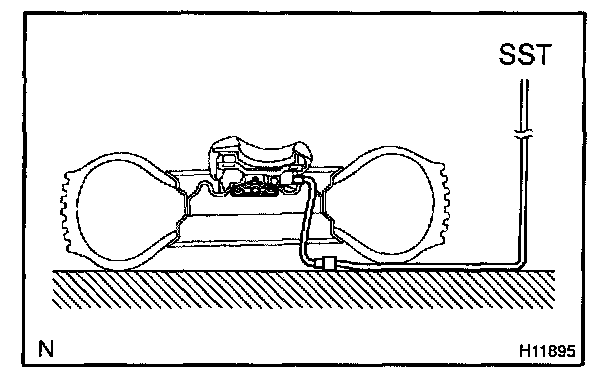 NOTE: To avoid damaging the SST connector and wire harness, do not lock the secondary lock of the twin lock. Also, secure some slack for the SST wire harness inside the disc wheel.
