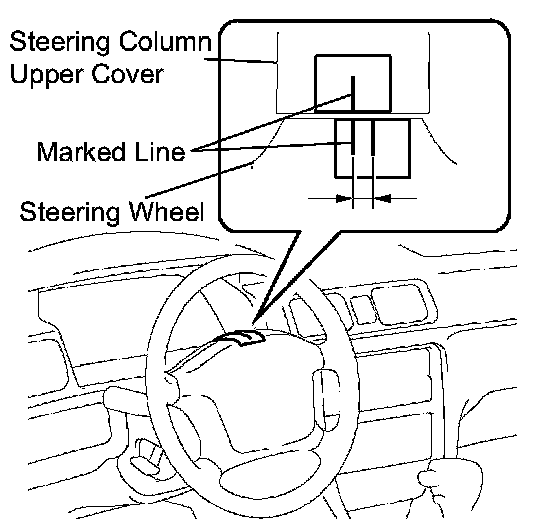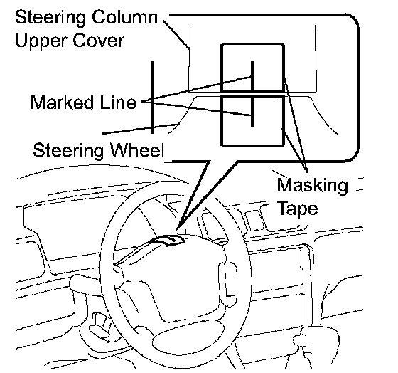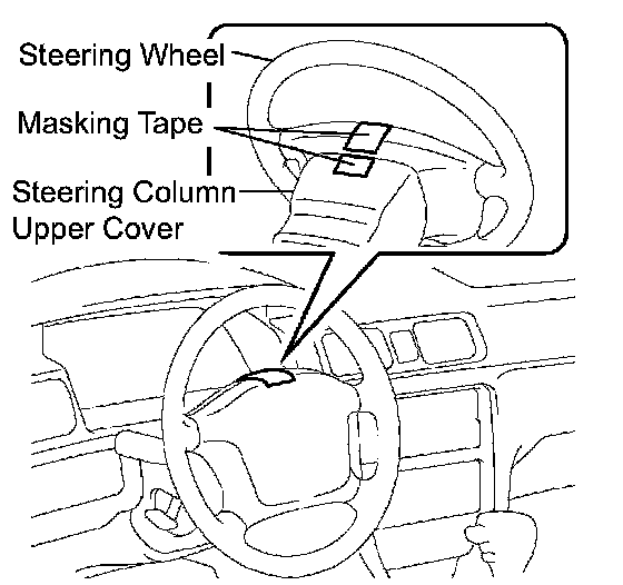 (1) Apply masking tape on the top center of the steering wheel and steering column upper cover.