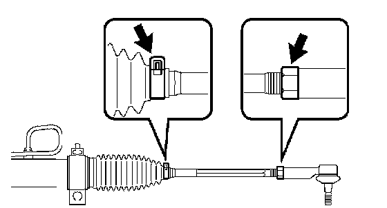 (1) Draw a line on the RH and LH tie rod ends and rack ends respectively where it can be easily seen.