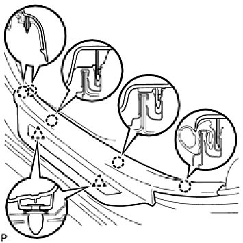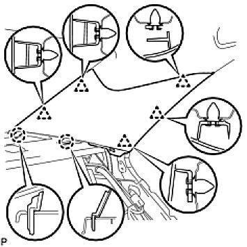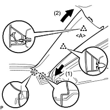 (c) Engage the 2 claws and 2 clips, then install the front pillar garnish RH.