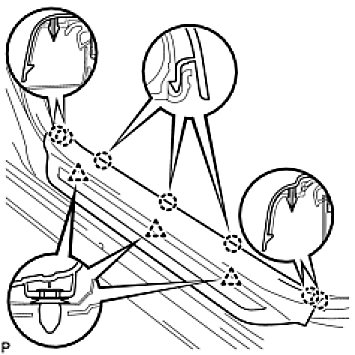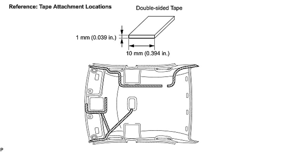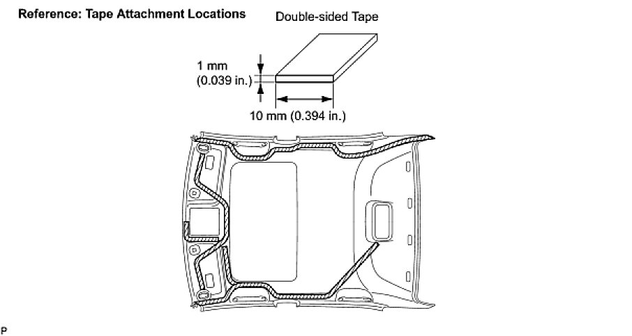 (a) Apply new double-sided tape to locations shown in the illustration while aligning the tape with the markings on the roof headlining.