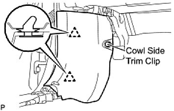(b) Install the cowl side trim sub-assembly LH with the cowl side trim clip.
