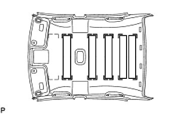 (a) Align the markings on the roof headlining assembly with the No. 4 roof silencer pads and install the silencer pads using hot melt glue or double-sided tape as shown in the illustration.
