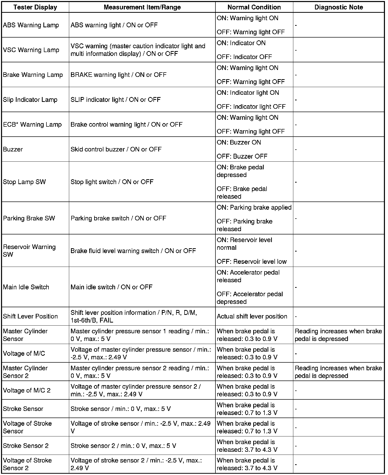 HINT: With Techstream connected to the DLC3 and the power switch on (IG), the Electronically Controlled Brake, ABS, and VSC Data List can be displayed. Follow the prompts on the tester screen to access the Data List.