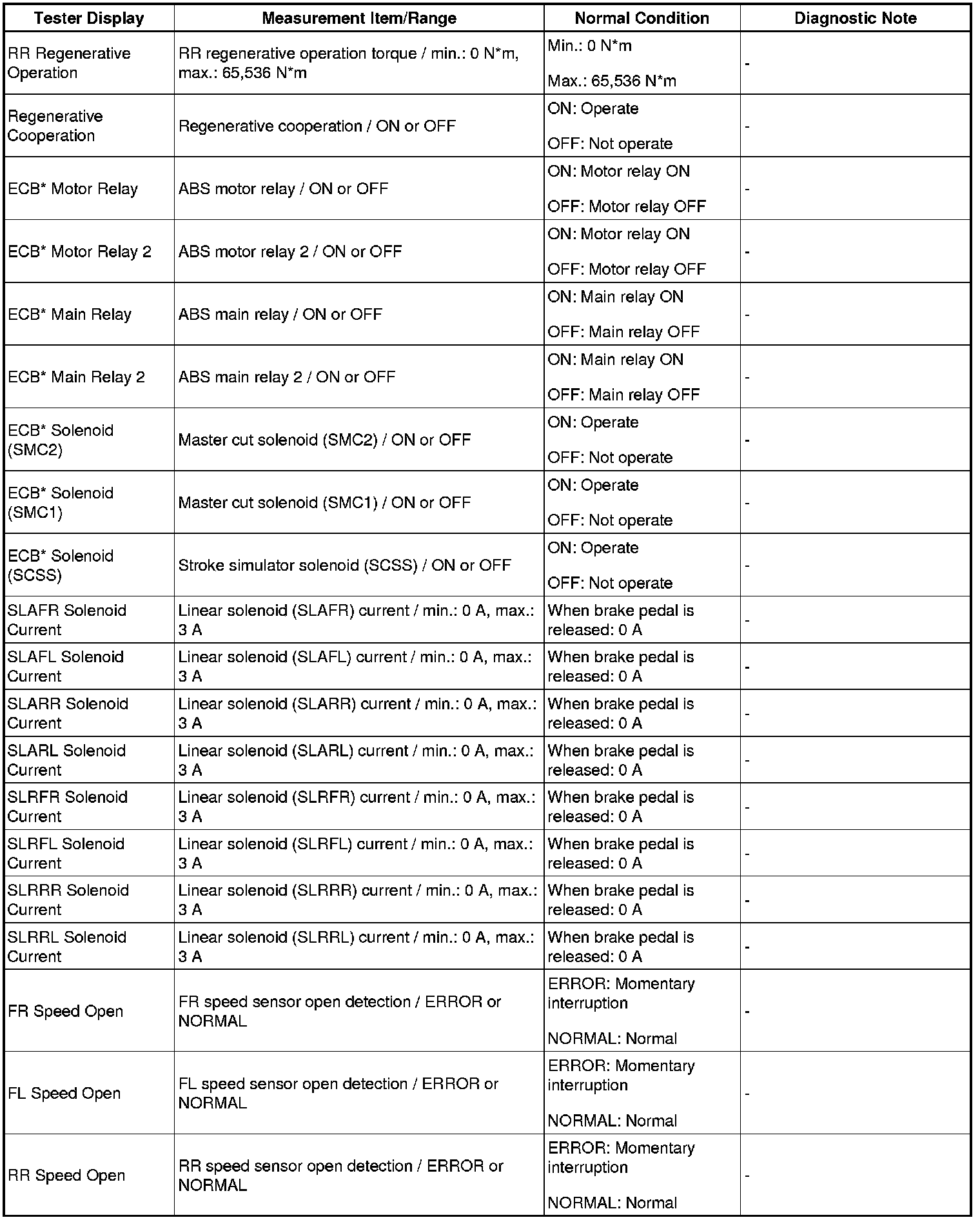 BRAKE CONTROL: ELECTRONICALLY CONTROLLED BRAKE SYSTEM: DATA LIST / ACTIVE TEST