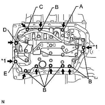 - First, temporarily tighten the bolts marked by (*1) in the illustration because they are positioning bolts.
