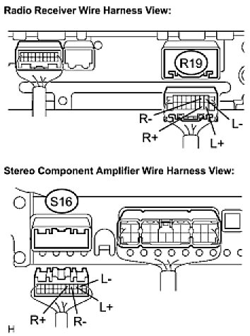 (a) Disconnect the radio receiver R19 connector and stereo component amplifier S16 connector.