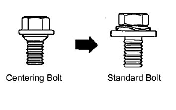 - Centering bolts are used to mount the hood hinge and hood lock. The hood and hood lock cannot be adjusted with the centering bolts on. Substitute the centering bolts with standard bolts (with washers) when making adjustments.