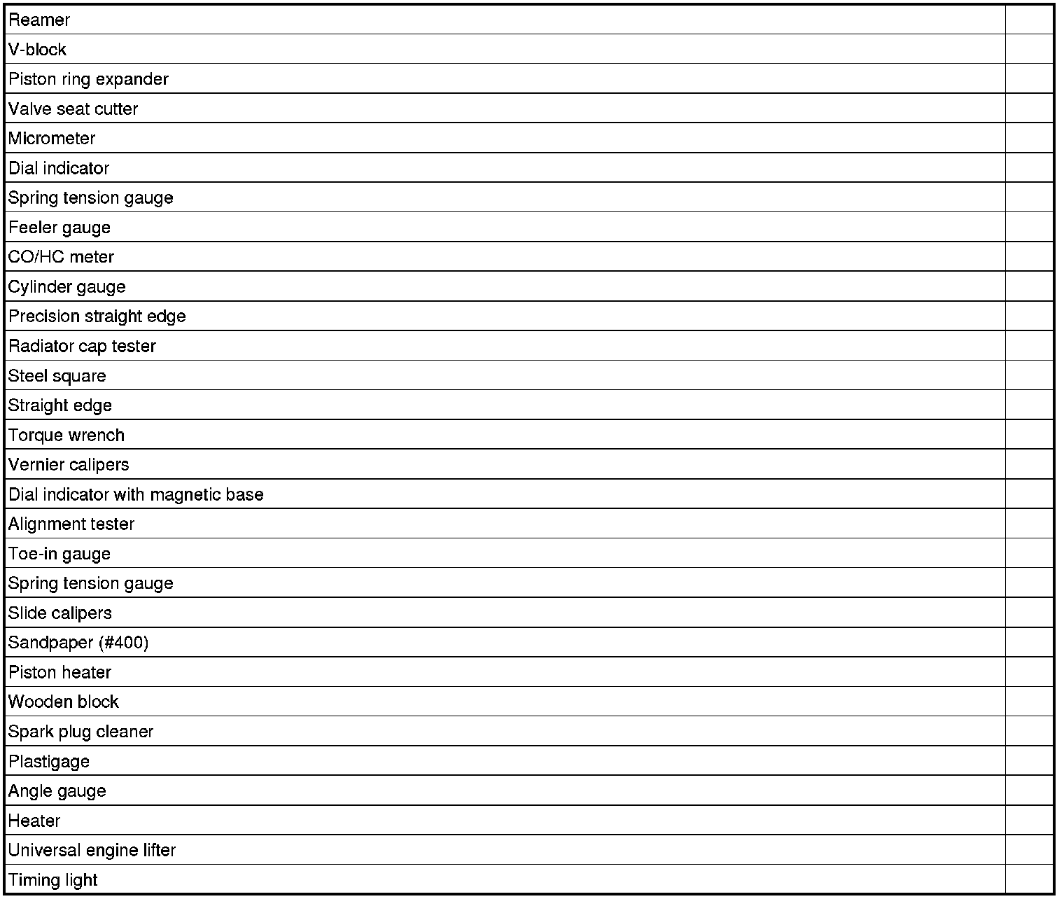 PREPARATION: 1ZZ-FE ENGINE MECHANICAL: EQUIPMENT