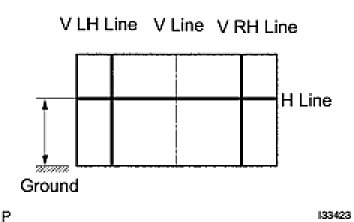 Draw a horizontal line across the screen so that it passes through the center marks. The H line should be at the same height as the headlight bulb center marks of the low-beam headlights.