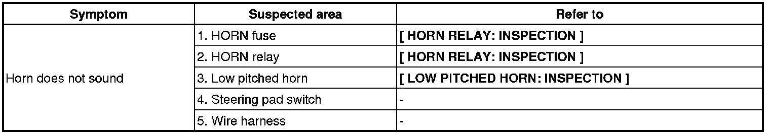 HORN: HORN SYSTEM: PROBLEM SYMPTOMS TABLE