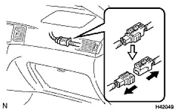 HINT: When scrapping a vehicle equipped with the SRS or disposing of the front passenger airbag assembly, be sure to deploy the airbag first in accordance with the procedure described below. If any abnormality occurs with airbag deployment, contact the SERVICE DEPT. of the TOYOTA MOTOR SALES, U.S.A., INC.