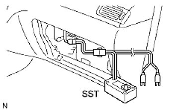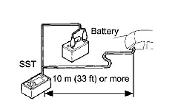 (5) Connect the red clip of the SST to the battery positive (+) terminal and the black clip of the SST to the negative (-) terminal.