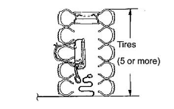 (2) Place at least 2 tires over the tire which the front passenger airbag assembly is tied to. The top tire should have a disc wheel installed.