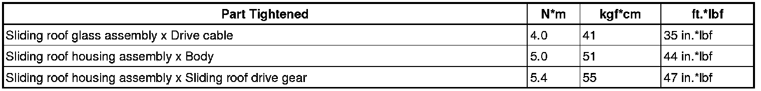SERVICE SPECIFICATIONS: SLIDING ROOF: TORQUE SPECIFICATIONS