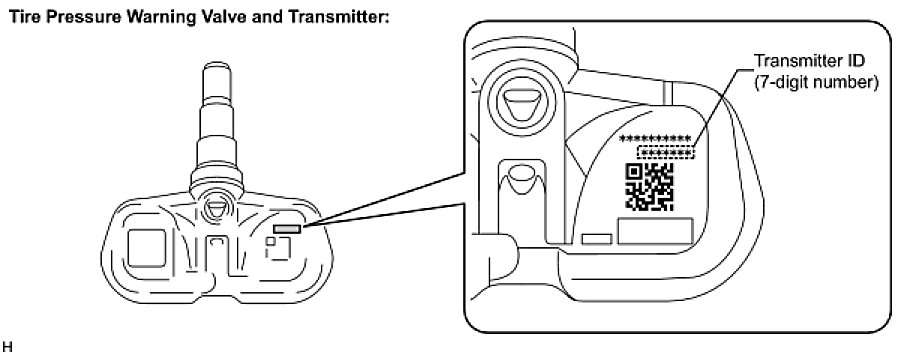 (1) Take a note of the 7-digit number (transmitter ID) written on the new tire pressure warning valve and transmitter when replacing it. Register the transmitter IDs in the tire pressure warning ECU after replacing the tire pressure warning valve and transmitter and installing the tires onto the wheels.