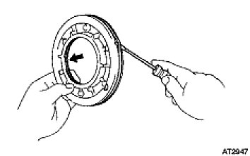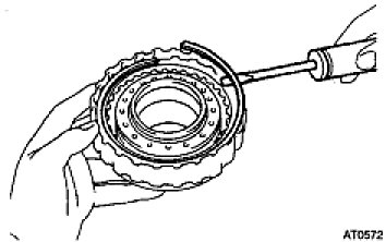 (a) Using a screwdriver, remove the No. 1 underdrive clutch flange hole snap ring from the underdrive clutch drum sub-assembly.