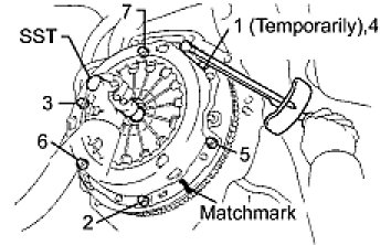 (a) Align the matchmarks on the clutch cover assembly and flywheel sub-assembly.