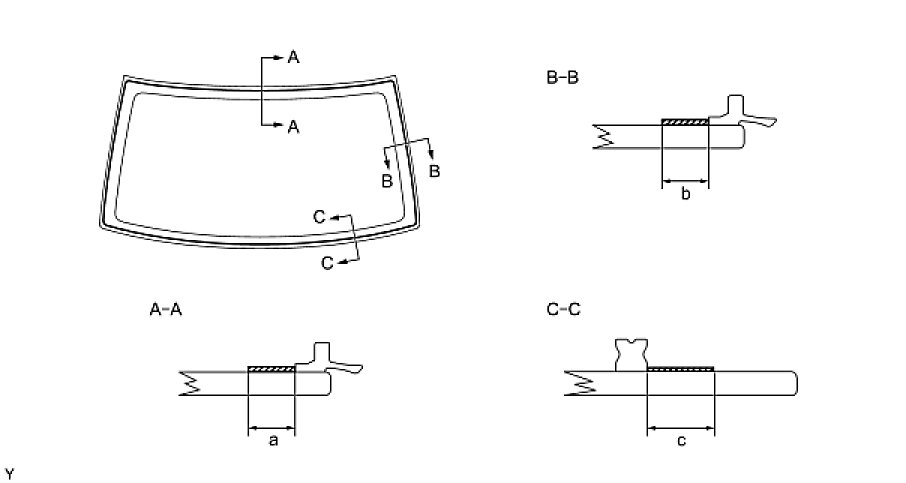(b) Install 2 new stoppers onto the windshield glass, as shown in the illustration.