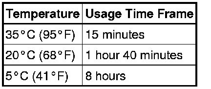 HINT: After cutting off the tip, use all the adhesive within the times indicated in the table below.