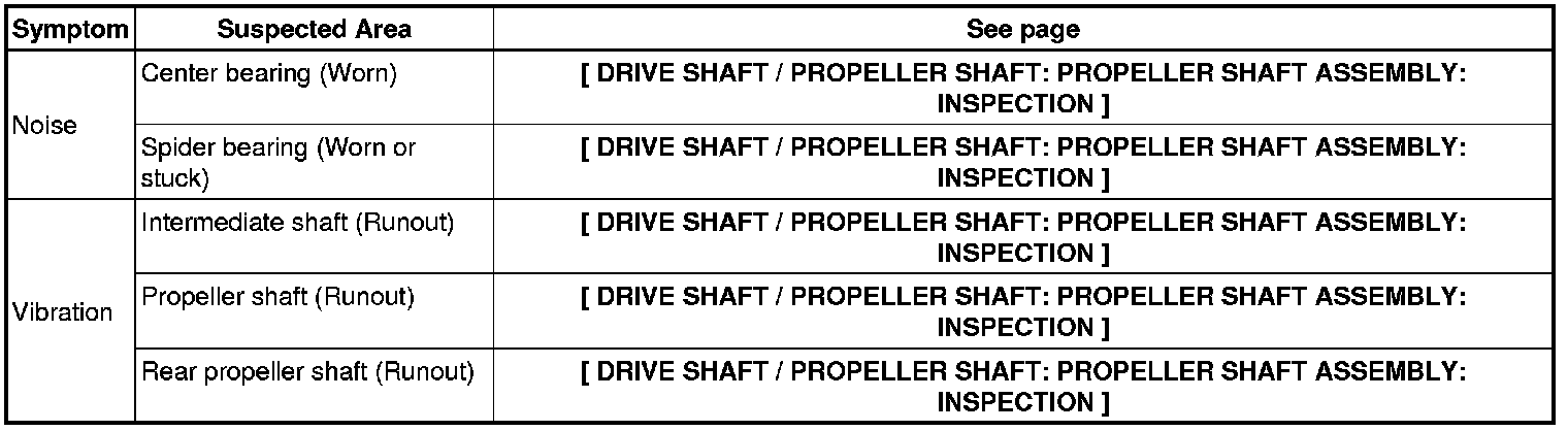 DRIVE SHAFT / PROPELLER SHAFT: PROPELLER SHAFT SYSTEM: PROBLEM SYMPTOMS TABLE
