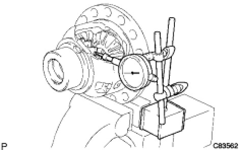 (c) Hold the pinion gear in the differential case and measure the backlash of the side gear.