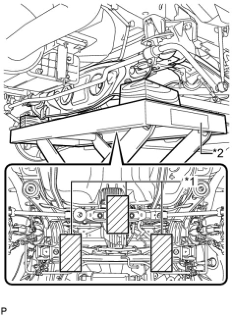 When lowering the rear suspension member, be careful not to damage the vehicle body or other components installed on the vehicle.