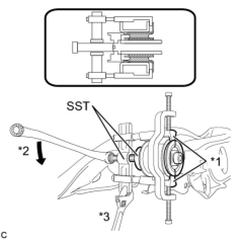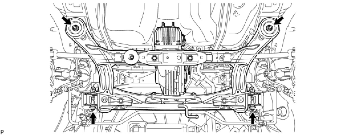 (a) Using SST, temporarily remove the rear suspension member body mounting rear cushion.