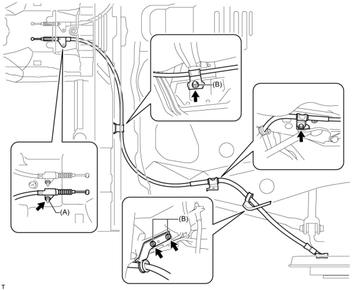 (a) Install the No. 3 parking brake cable assembly with the bolt and 4 nuts.